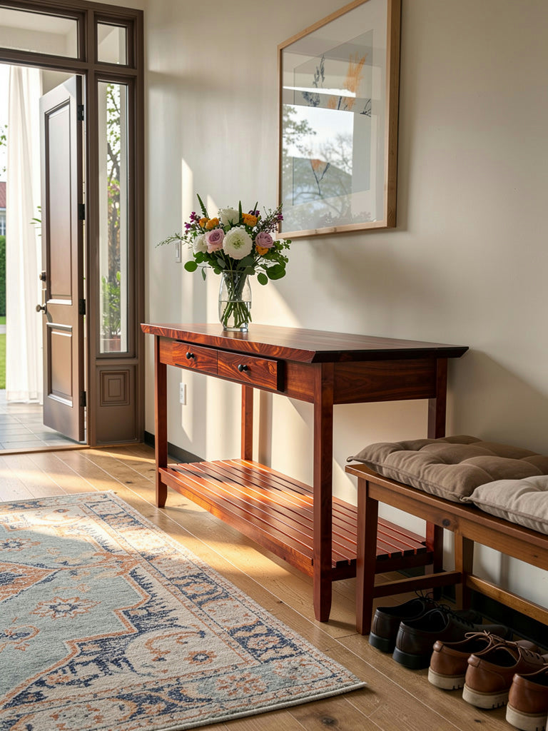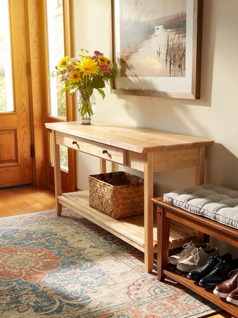 Transform your space with our beautiful Cece Console Table! Maximize counter-space and keep your must-have items handy in the open storage. Elevate your space with the warm and inviting wood tones. Organize and beautify your kitchen now!