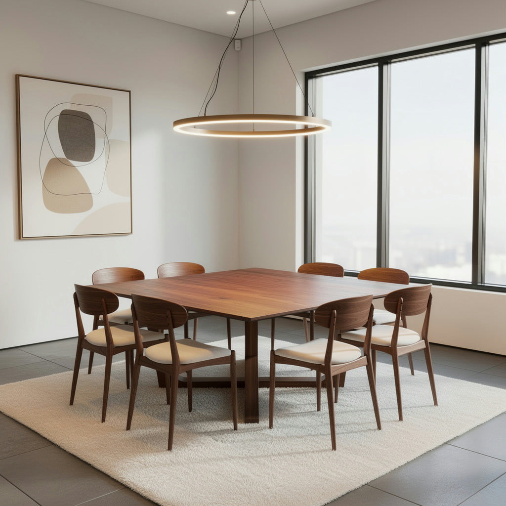 The Quad offers a refined blend of minimalist design and practicality, featuring clean, straight lines that enhance any dining space. Its square shape is ideal for uniquely sized rooms, providing a balanced and elegant focal point.